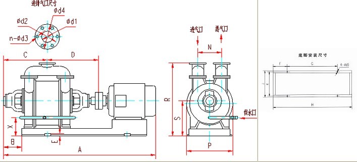 六、SK型水環(huán)式真空泵的安裝尺寸圖: