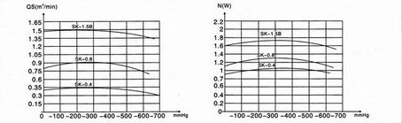 六、SK型直聯(lián)水環(huán)式真空泵的性能曲線圖: