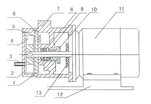 8、封液環(huán) | 9、填料 | 10、填料壓蓋 | 11、電機(jī) | 12、底盤 | 13、擋水圈 |