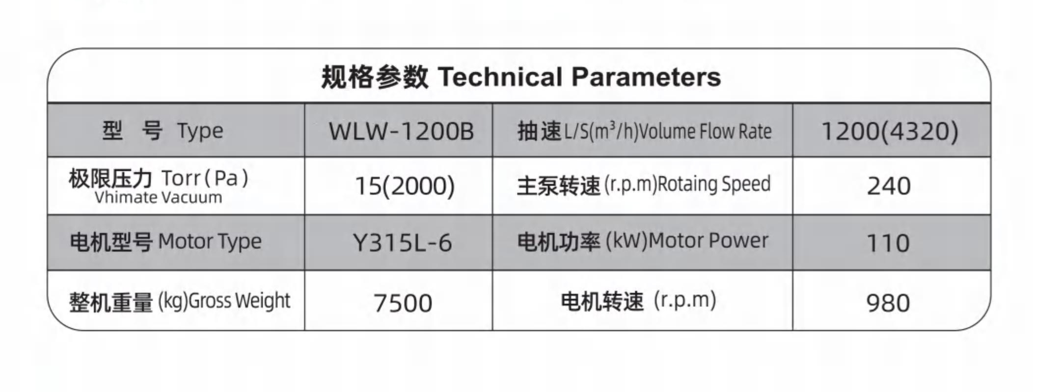 WLW往復(fù)立式無油真空泵產(chǎn)品參數(shù):