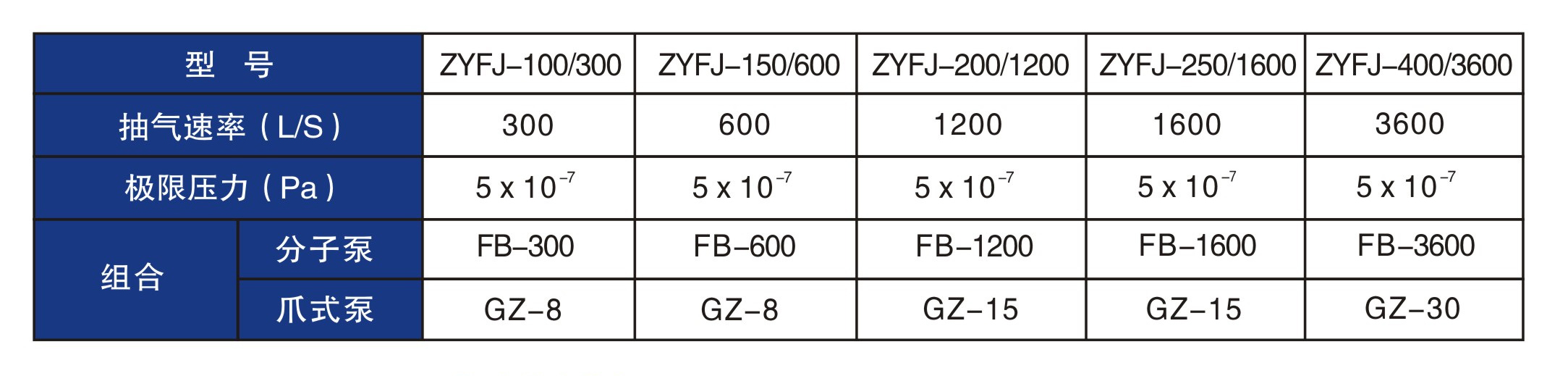 干式分子機(jī)組ZYFJ技術(shù)參數(shù)表: